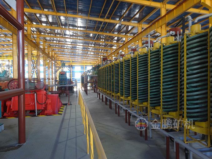 2、預選:將20~4mm礦石進入重介質旋流器預選,再經一段棒磨后采用跳汰機預選,跳汰尾礦用2mm振篩篩除+2mm作為廢棄尾礦,-2mm進入搖床選別。