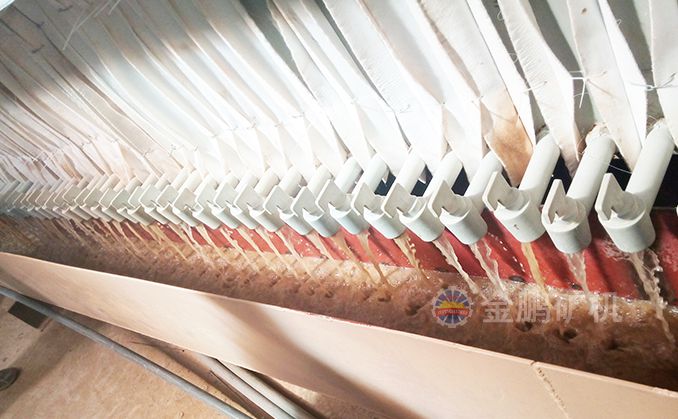浸出槽尾礦經緩沖槽由泵輸送到全自動廂式壓濾機,壓濾后的水流入循環水池以備循環利用,濾餅經帶運輸機運到尾礦堆場,卡車將尾礦運到尾礦庫。