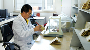 設計院配備了完善的選礦試驗設備和巖礦鑒定設備,下設六間研究室,可進行浸出上百種礦物試驗研究,分別為巖礦鑒定室、化驗室、選冶研究室、生物氧化室、重選實驗室、磁選實驗室。目前,巖礦鑒定室可進行光(?。┢溺R下鑒定工作,查明礦石的物質組成,礦物形態及嵌布特征;化驗室擁有示波極譜儀、可見光分光光度計、碳硫分析等儀器,可進行多元素、物相等分析檢測工作,檢測水平處于國內領先水平。各研究室均由專家帶隊,正是這些技術員們一遍遍的試驗研究,為金鵬的科技水平提高,做出了極大的貢獻。