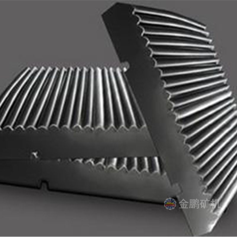 鄂式破碎機式破碎機的工作部分是兩塊顎板,一是固定顎板(定顎),垂直(或上端略外傾)固定在機體前壁上,另一是活動顎板(動顎),位置傾斜,與固定顎板形成上大下小的破碎腔(工作腔)。